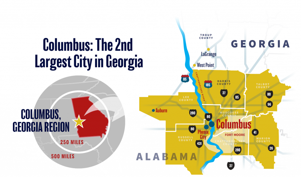 Why Columbus? 조지아주에서 두 번째로 큰 도시 합리적인 생활비와 비즈니스 운영 비용 다양한 산업이 활발히 성장하는 균형 잡힌 경제 구조 기업 친화적인 환경 일류 공립학교들이 제공하는 우수한 교육 환경 다양한 교육 기회를 통해 학생들이 학업적으로 성장할 수 있도록 지원 빠르게 성장하고 있는 활기찬 한인 커뮤니티